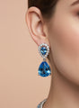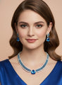 Elevate your style with our Luxury Blue Cubic Zirconia Necklace & Earrings Set. This exquisite matching jewelry set showcases a vibrant blue cubic zirconia teardrop pendant at the center, beautifully framed by layers of sparkling white CZ stones in an elegant collar design.