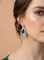 - Matching drop earrings with green CZ and white accents