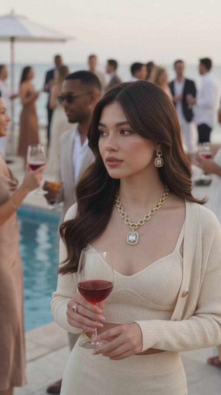 Luxury Cubic Zirconia Chain Link Pendant Necklace & Earrings Set