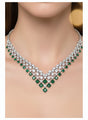 Enhance your elegance with this exquisite green and white Cubic Zirconia (CZ) necklace set, designed to give you a luxurious and royal look. Featuring a beautifully layered necklace adorned with sparkling CZ stones and rich green accents, this set perfectly combines sophistication with timeless charm.