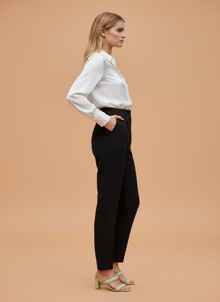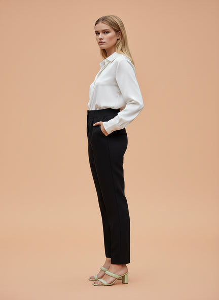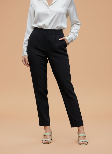 Banana Crepe Black Skin Fit Multi Pleated Trouser