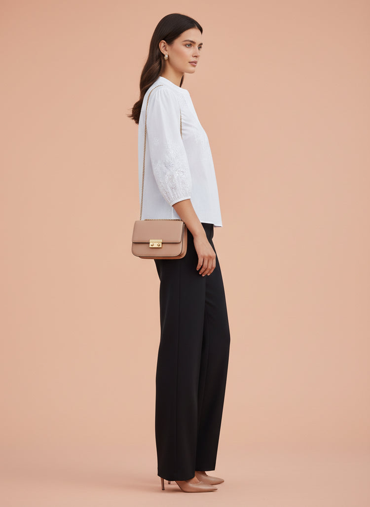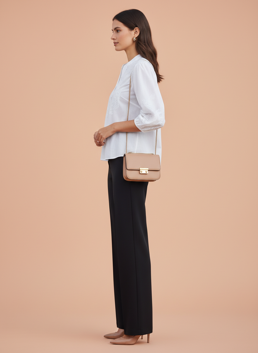 Graceful aur refined look ke liye yeh luxury satin top perfect choice hai. Soft pastel green shade ke saath delicate embroidery detailing isko classy aur sophisticated finish deti hai. Lightweight fabric comfortable feel