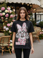 Upgrade your everyday style with this trendy oversized graphic print t-shirt designed for a bold and fashionable look. Crafted from soft and breathable fabric, this black tee ensures all-day comfort while keeping your style on point. The eye-catching cartoon-inspired front print adds a fun and unique touch, making it perfect for casual outings, streetwear looks, or relaxed weekends.