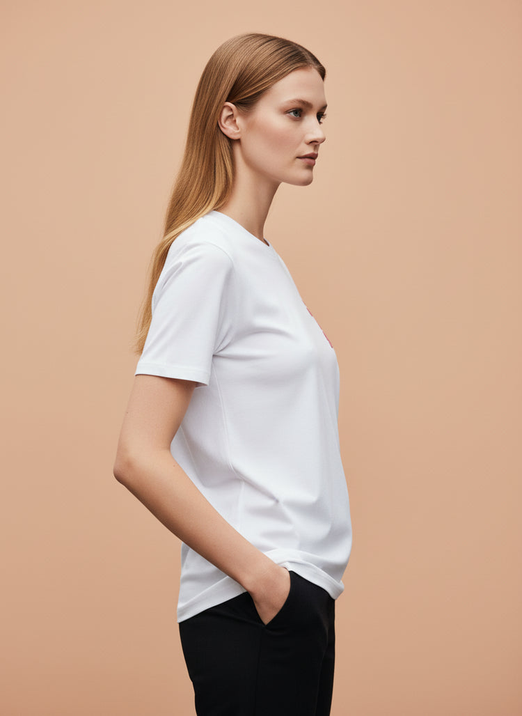 This classic white base with vibrant pink print gives a fresh, minimal yet statement-making look – perfect for everyday wear, casual outings, college, or weekend plans.