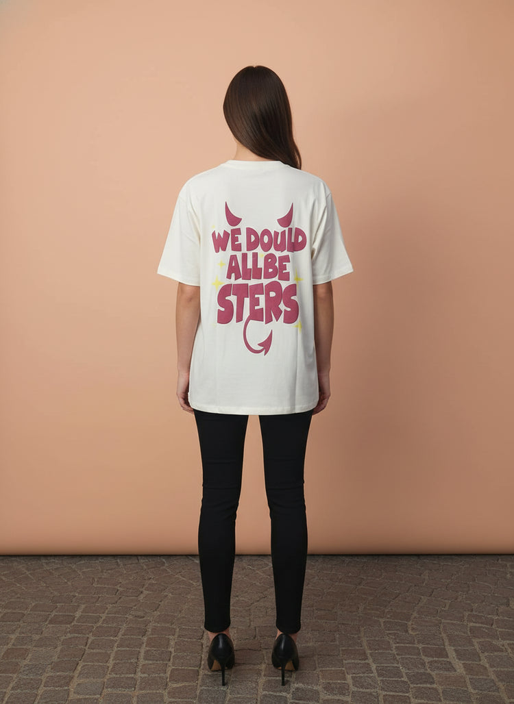 White We More All The Stars Graphic Oversized T-Shirt for Women