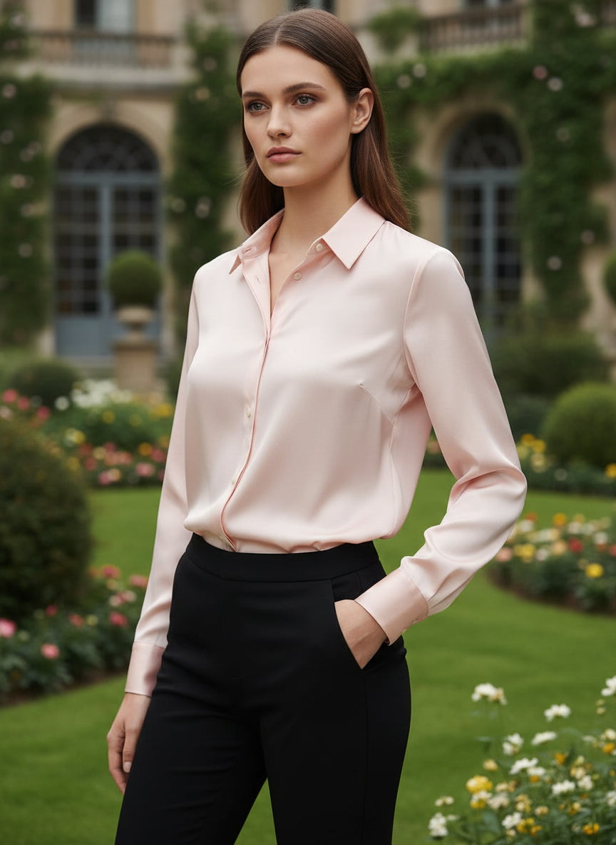 Ballerina Pink Regular Fit Summer Satin Shirt