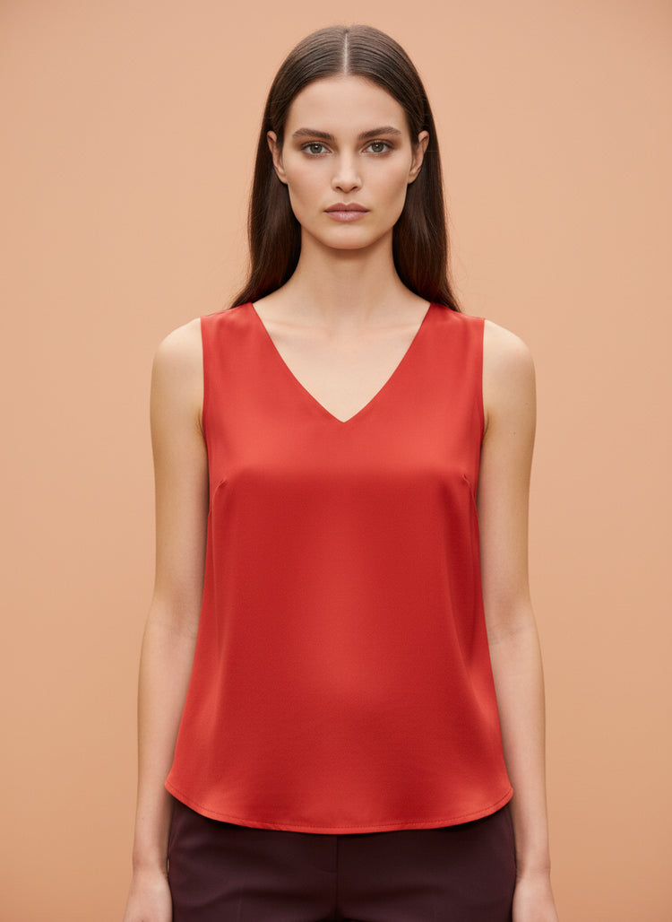 European Satin V Neck Sleeveless Top